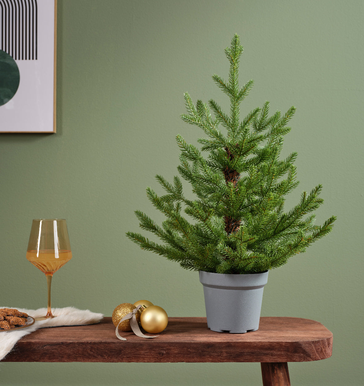 Kompaktowa, elegancka choinka doniczkowa o wysokości 60 cm, wykonana z wysokiej jakości materiałów. Dzięki realistycznym igłom PE i starannemu wykończeniu doskonale sprawdzi się jako dekoracja stołu, komody czy biura. Idealna do wnętrz mieszkalnych oraz przestrzeni komercyjnych.