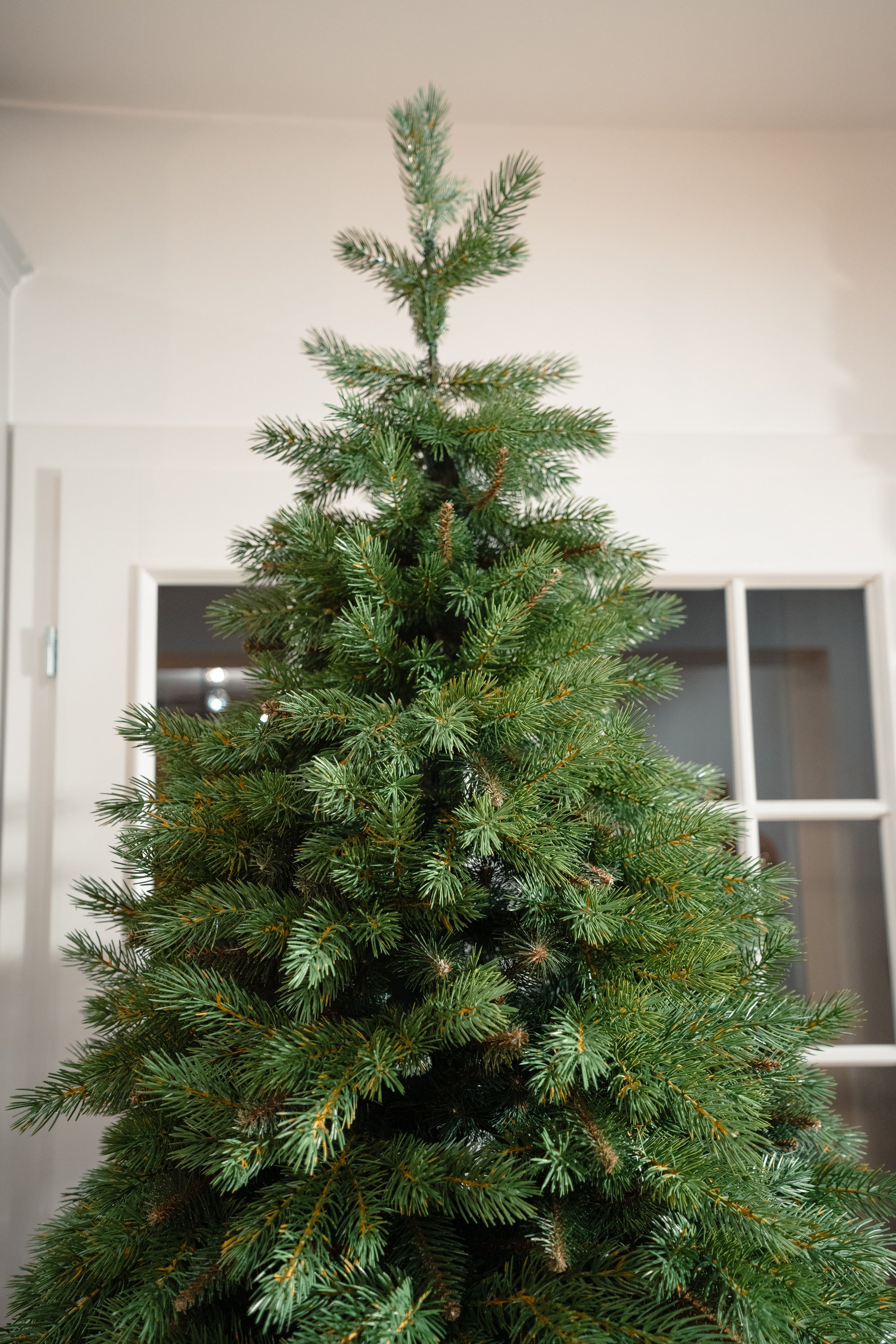Choinka sosnowa z mieszanki PE i PVC to połączenie naturalnego wyglądu z trwałością. Gałązki są pełne, gęste i mają realistyczny wygląd, a dzięki zastosowaniu PE na końcach igiełek drzewko wygląda jak prawdziwa sosna.