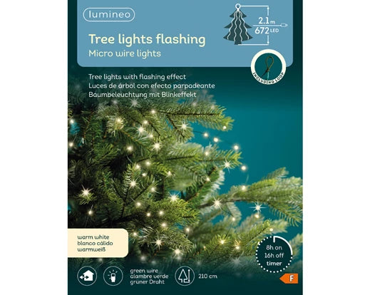 Ciepłe lampki choinkowe Micro LED marki Lumineo na zielonym druciku o długości 2,1 m z 672 diodami LED to idealna dekoracja na drzewka o wysokości od 1,8m do 2,2 m. Emitują ciepłe, przyjemne światło z efektem flash, dodając świątecznym aranżacjom dynamicznego, migoczącego blasku. Dzięki tej wyjątkowej funkcji, drzewko zyskuje magiczny, żywy wygląd, idealny na wyjątkowy świąteczny czas.