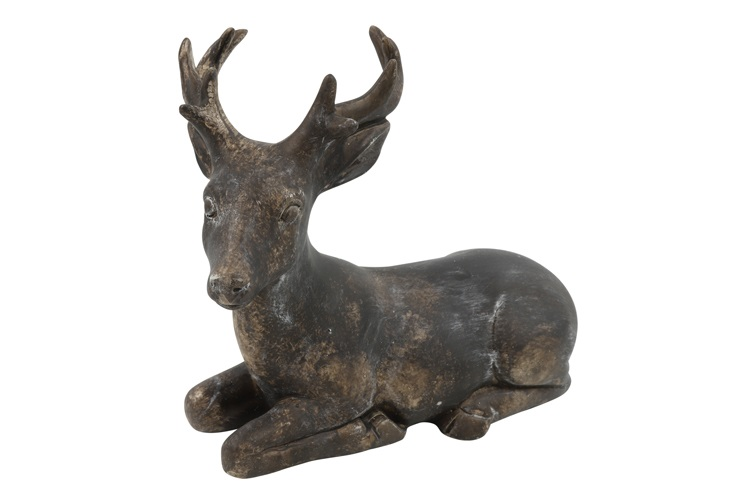 Figurka leżącego jelenia z efektem kamienia XL, brązowa