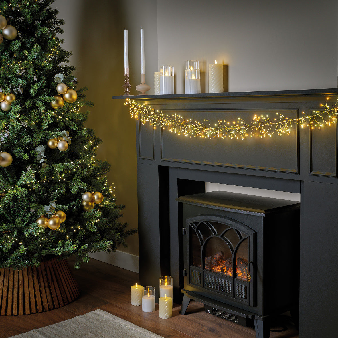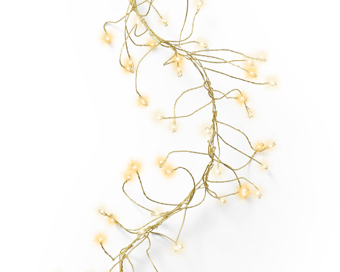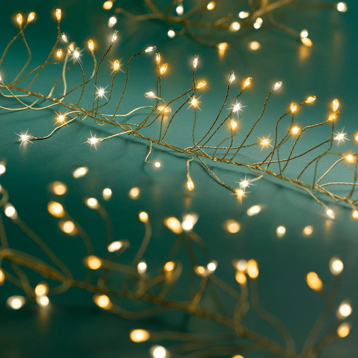 Idealna do dekoracji: balkonów, balustrad, okien, wejść oraz jako efektowny element świątecznego wystroju ogrodu lub tarasu. Złoty przewód i ciepłe światło sprawiają, że dekoracja wygląda luksusowo i elegancko – nawet w ciągu dnia.