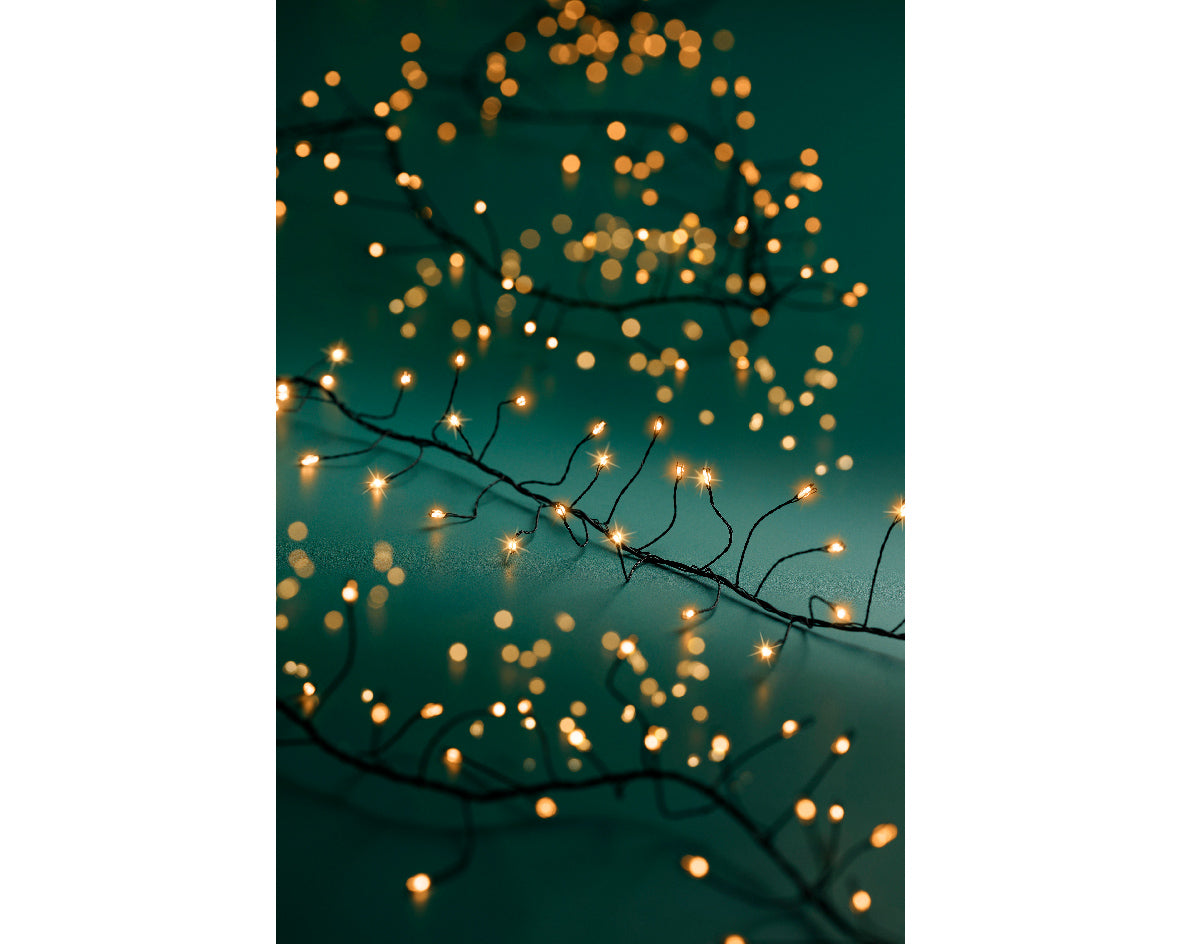 Klasyczne lampki LED 1440L – 18 m, czarny przewód, klasyczna biel, zewnętrzna – Lumineo