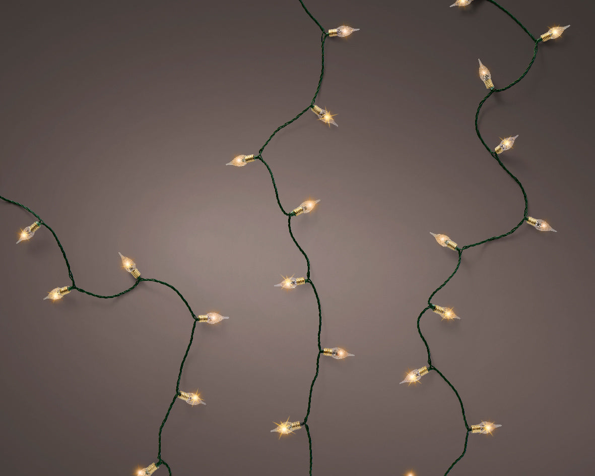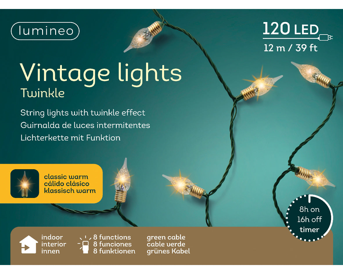 Lampki LED Vintage 120L – 11,9 m – klasyczny ciepły – Zielony przewód – Lumineo