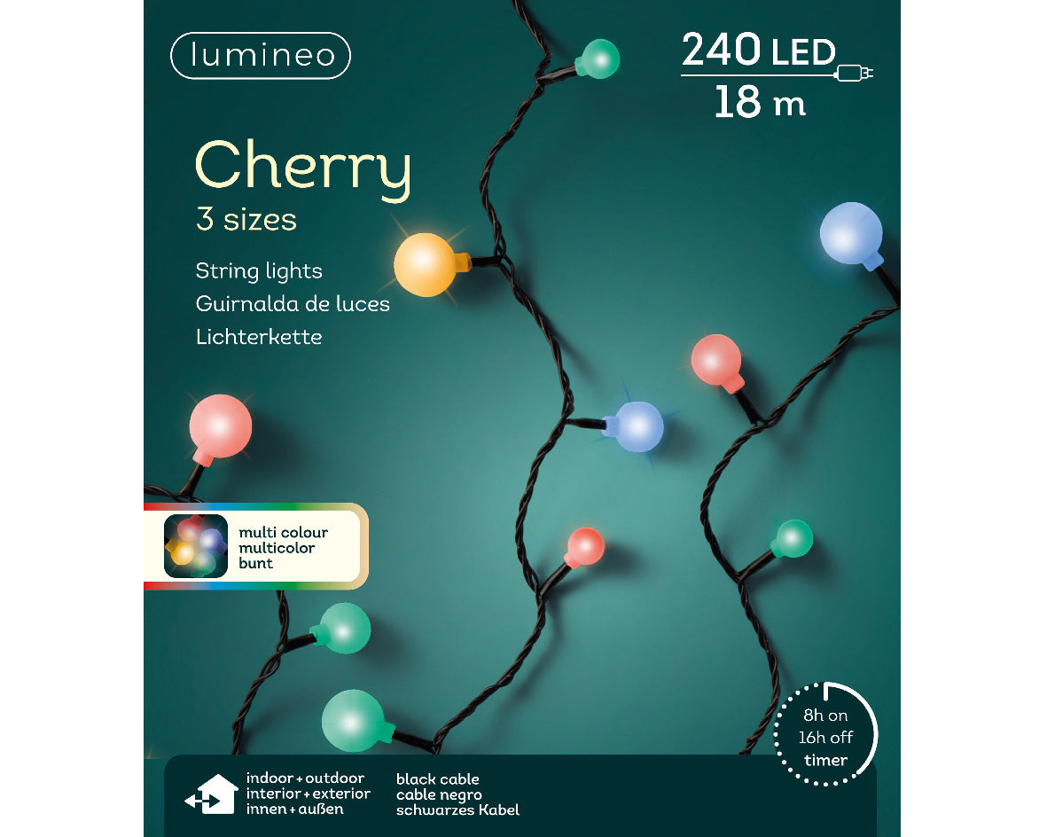 Lampki LED Cherry 240L – 18 m – Multi – Czarny przewód – Lumineo