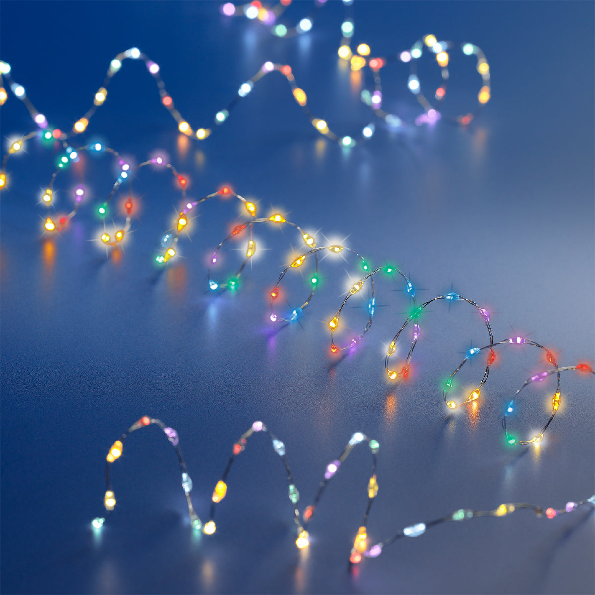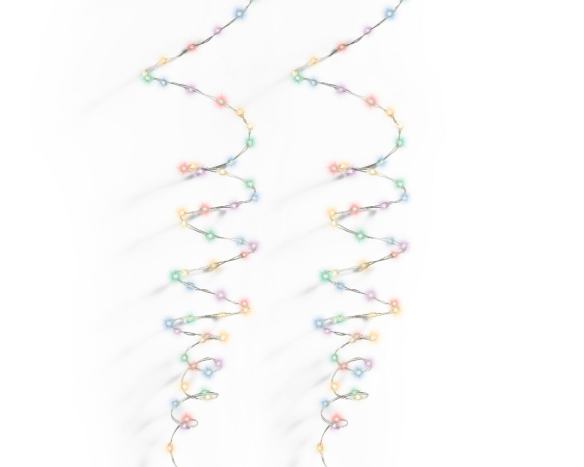 Subtelne, gęsto rozmieszczone mikro lampki LED na srebrnym przewodzie. Idealne do dekoracji świątecznych, florystyki, słoików, półek, luster czy ram obrazów. Tworzą ciepłą, kolorową i nastrojową aurę w każdym wnętrzu.