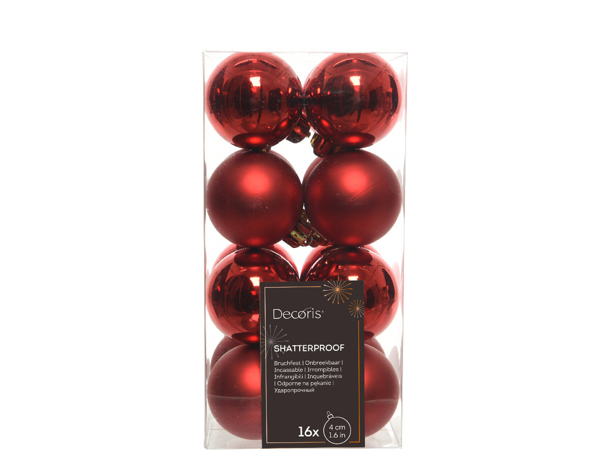 Nietłukące bombki czerwone 4 cm - mat i połysk (16 szt.)