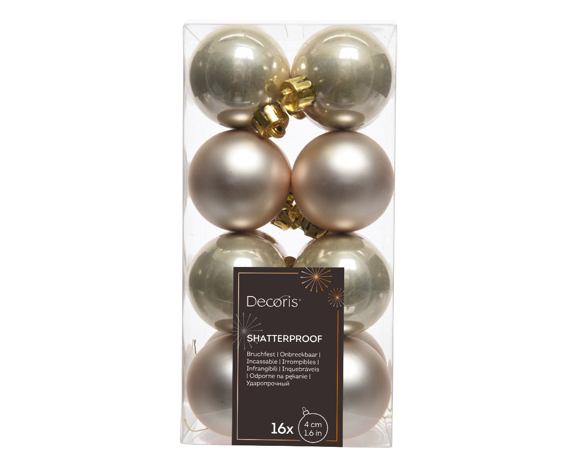 Nietłukące bombki kremowe 4 cm - mat i połysk (16 szt.)