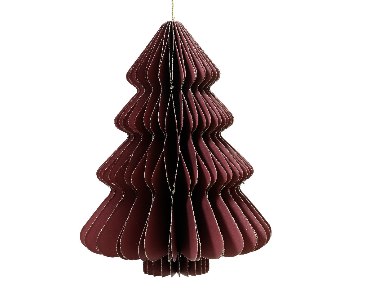 Choinka dekoracyjna z papieru 15 cm – bordowa ze złotym brokatem | Decoris