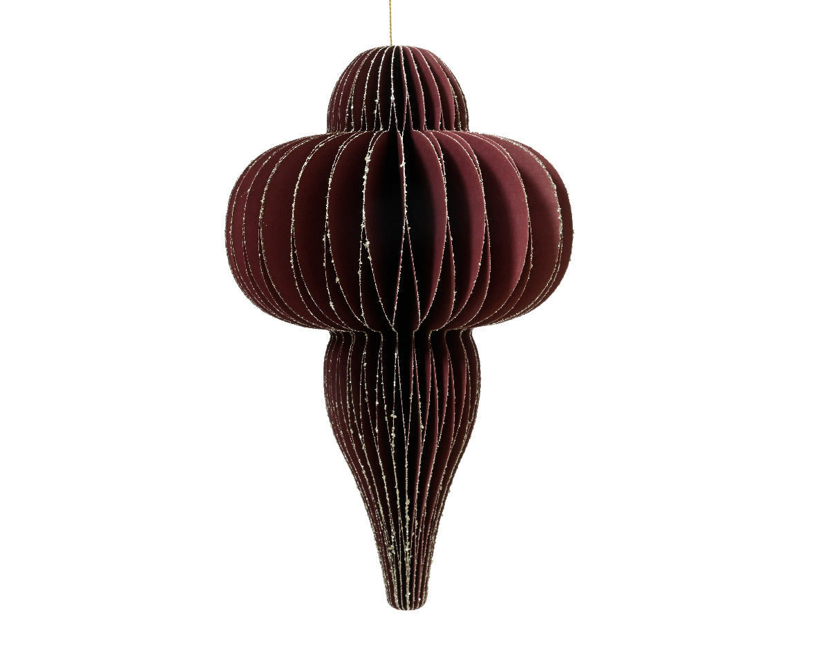 Papierowa ozdoba "Cebulka" wisząca 15 cm bordowa