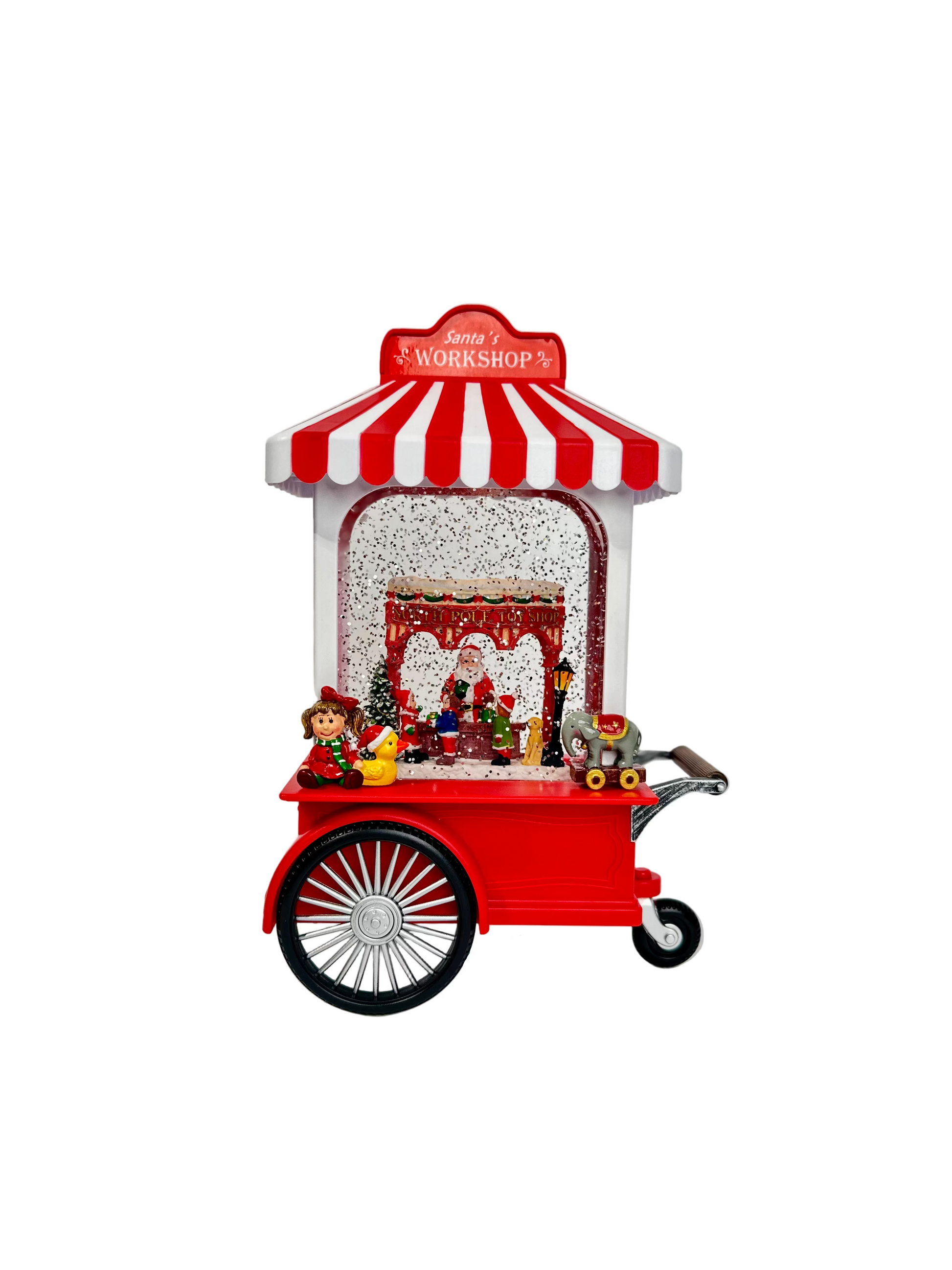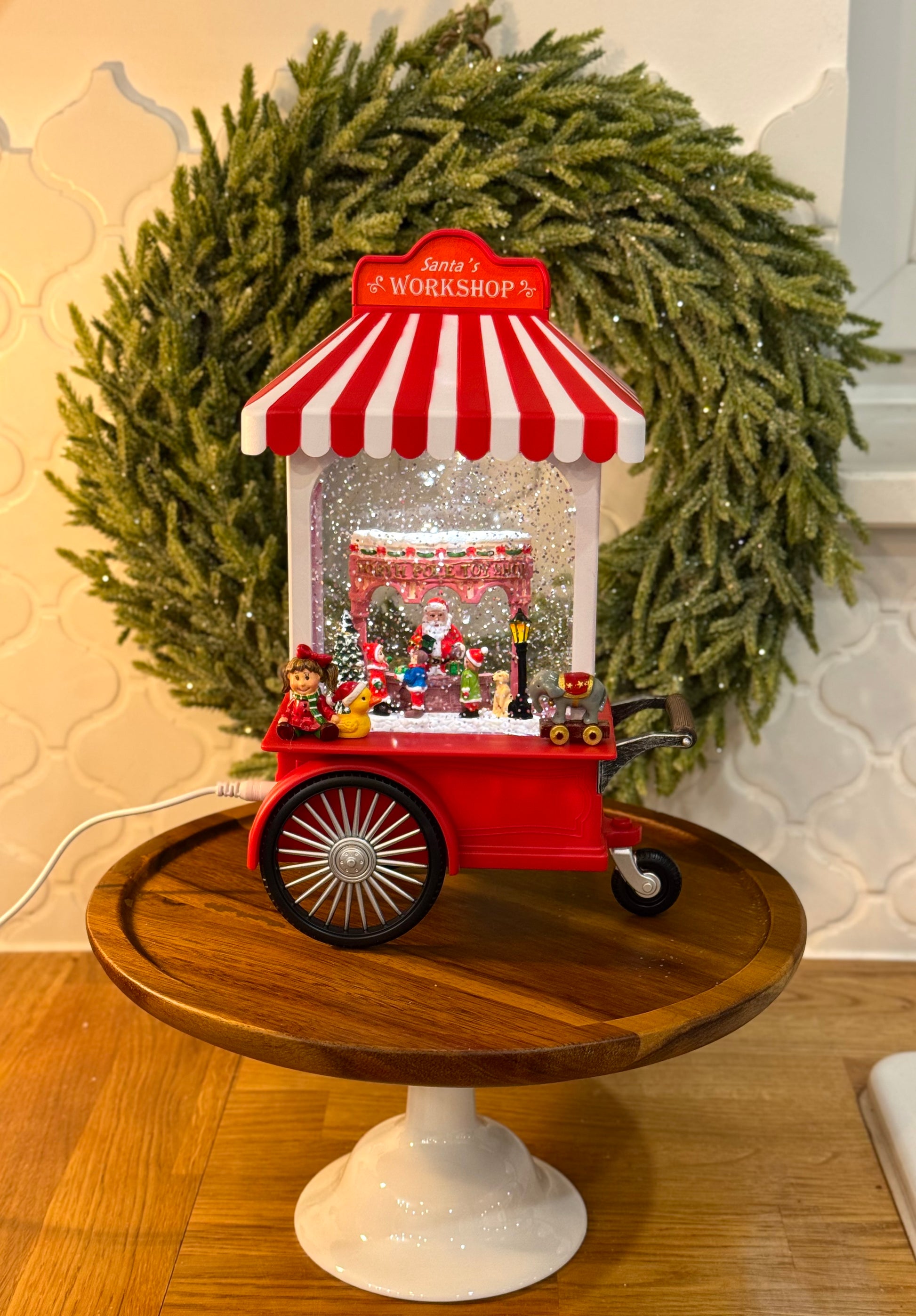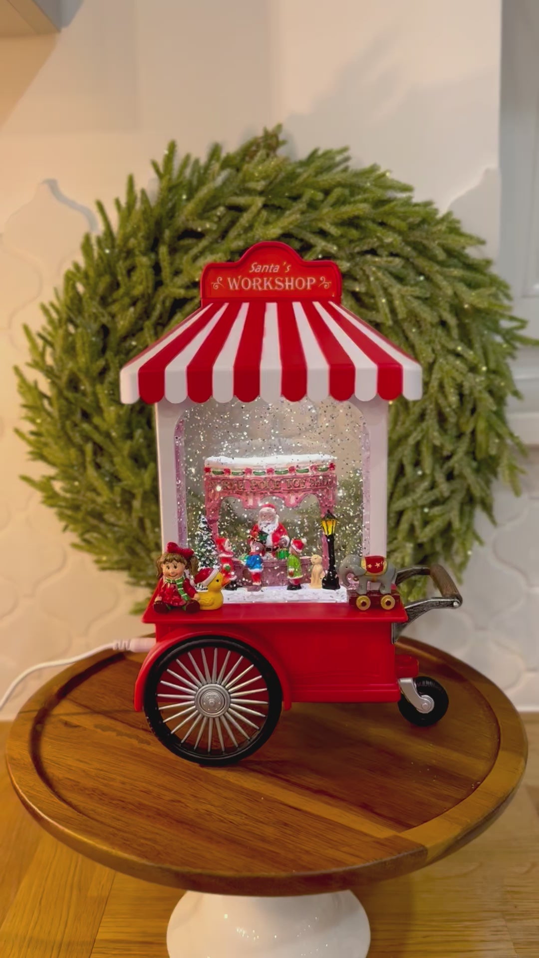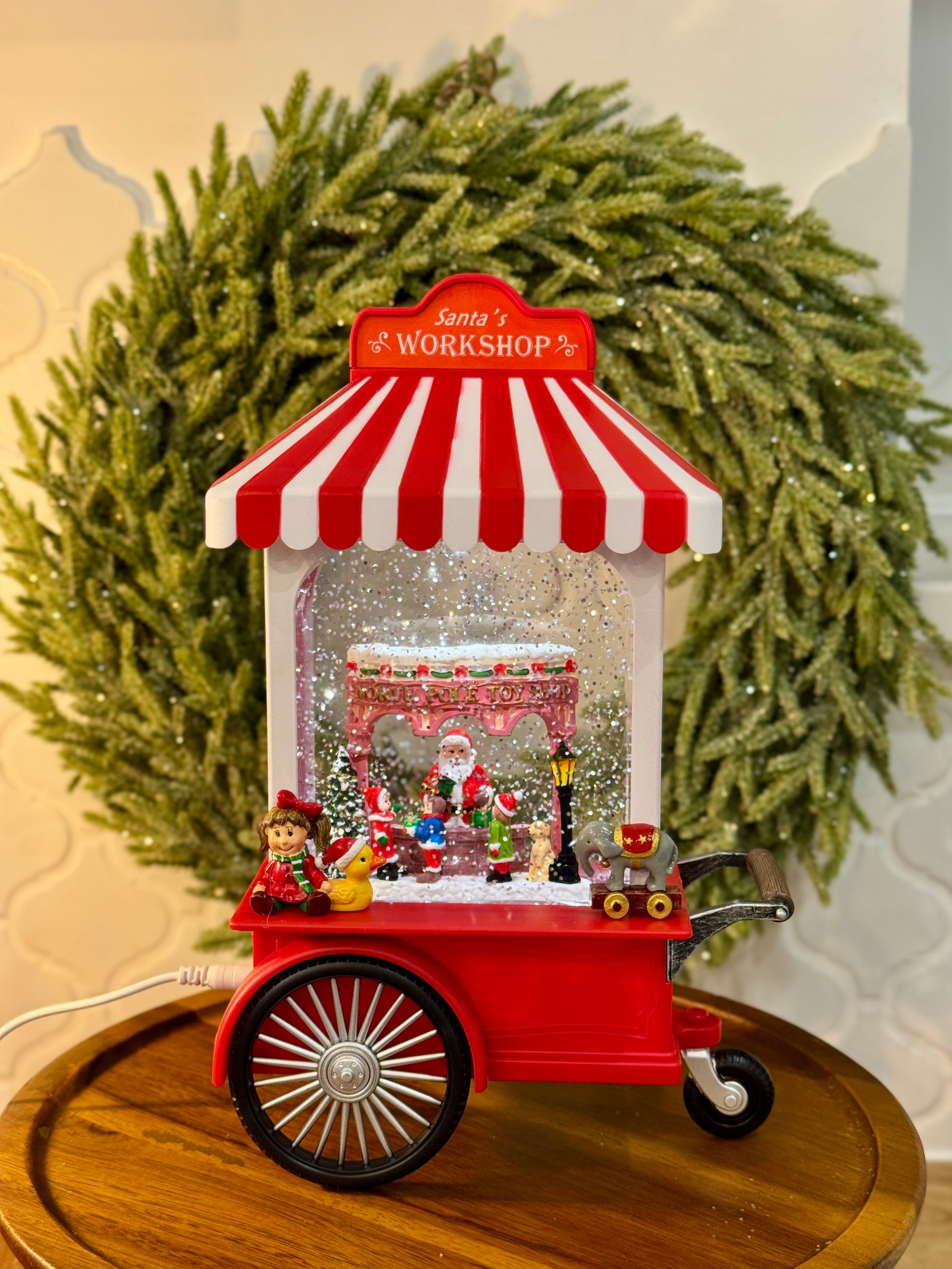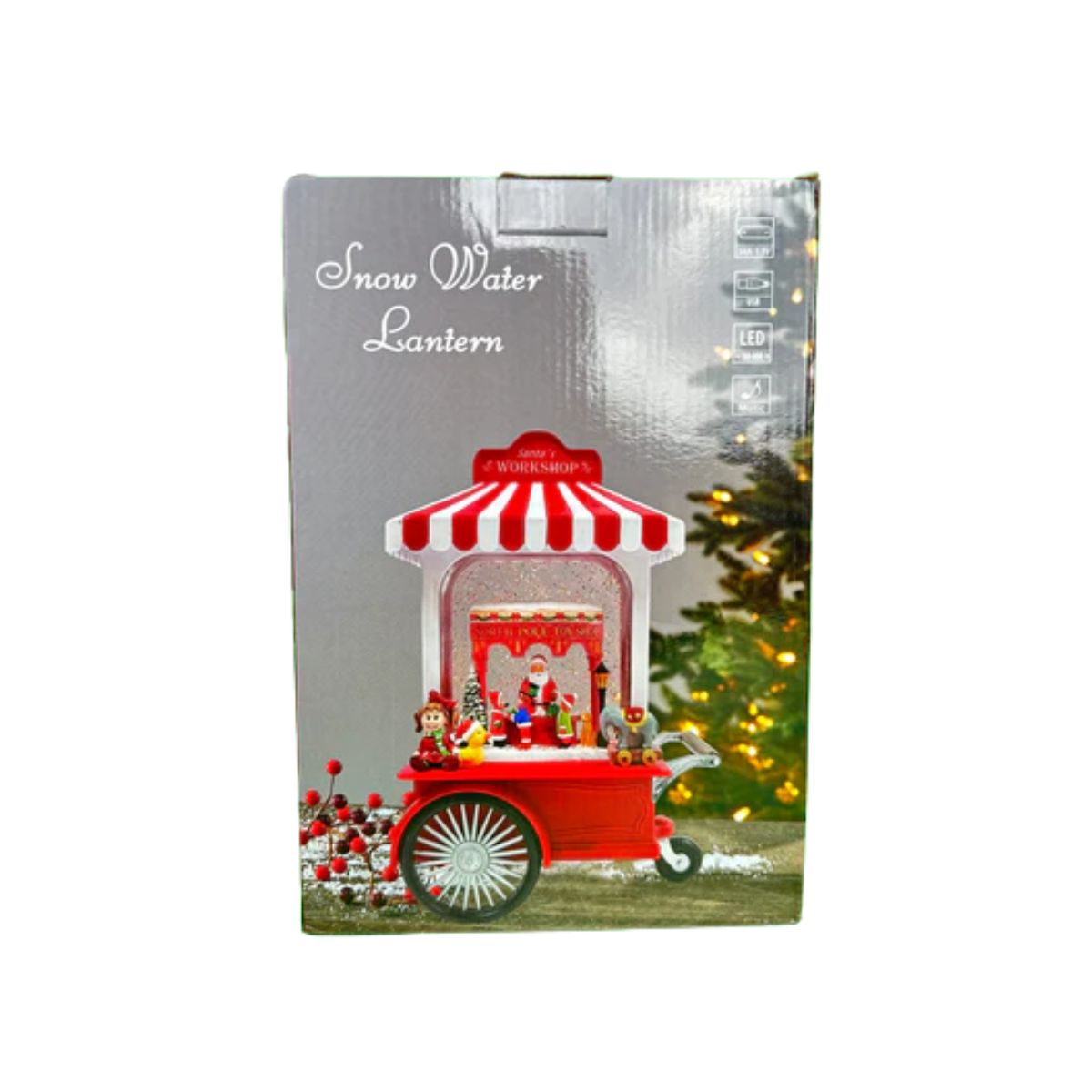 Świąteczna pozytywka LED cukierkowy wózek – idealna dekoracja na Boże Narodzenie! Dzięki efektowi nieustannie padającego śniegu oraz ciepłemu, przyjemnemu światłu, tworzy magiczny nastrój, idealny na długie zimowe wieczory. Dwa tryby do wyboru: świecący lub świecący z melodią świąteczną (Przedstawione na dołączonym filmiku z dźwiękiem). Pozytywka może być zasilana trzema bateriami AA, co czyni ją przenośną i łatwą do umieszczenia w dowolnym miejscu w domu. Alternatywnie, można ją podłączyć do sieci za pomocą dołączonego kabla USB, co pozwala na nieprzerwane działanie bez obawy o stan baterii. Świetna jako prezent lub urocza ozdoba, która wprowadzi świąteczną magię do Twojego domu!