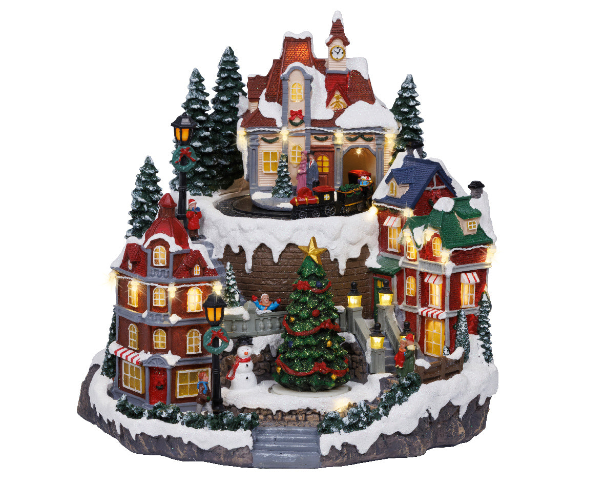 Pozytywka LED – Świąteczna Wioska z Muzyką i Ruchem – 37 diod, 30 cm