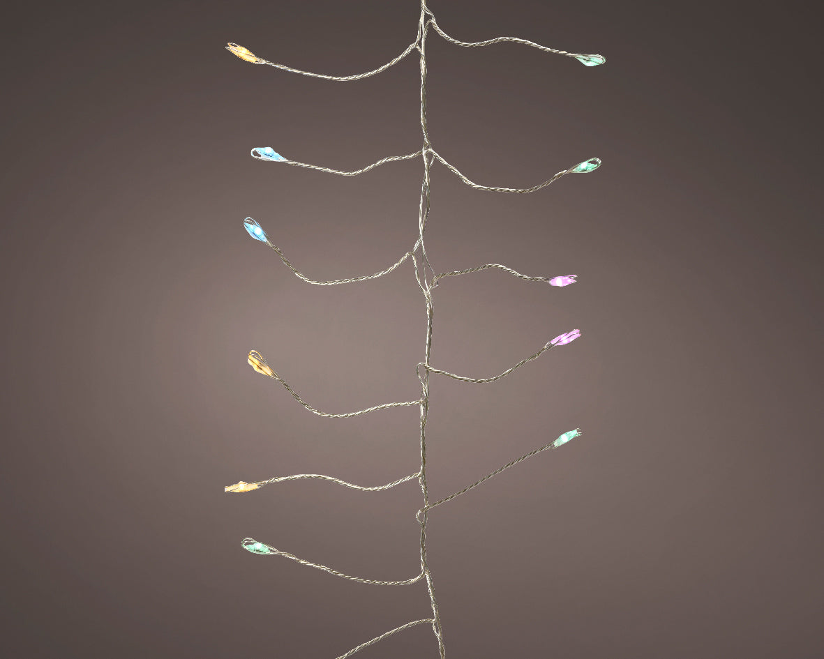 Sople świetlne LED 480L – 6 m, srebrny przewód, ciepły multikolor, na zewnątrz- Lumineo