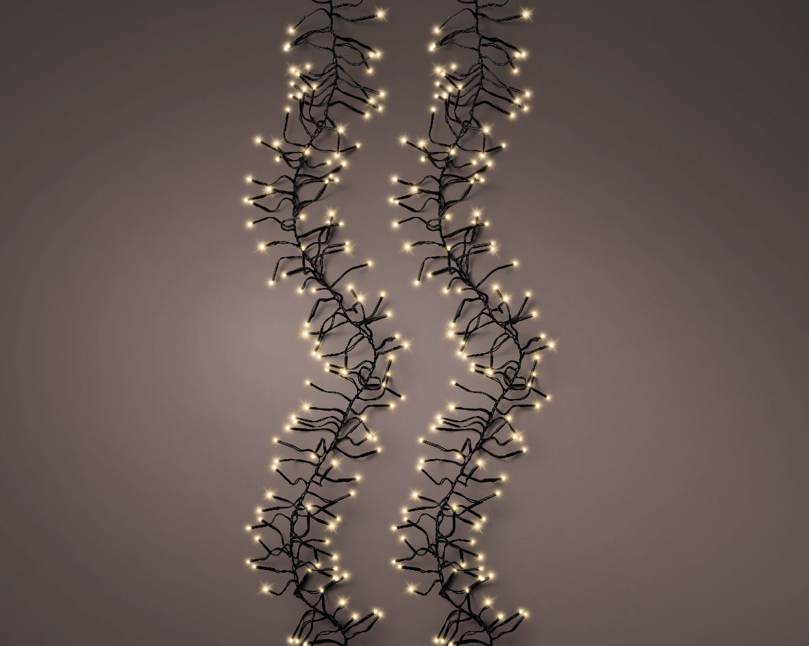 Wyjątkowo gęste lampki typu cluster o długości 7 metrów i aż 768 diodach LED. Dzięki bardzo małemu odstępowi między diodami (0,9 cm), tworzą intensywny i gęsty efekt świetlny – idealny do dekoracji świątecznych drzewek, balustrad lub elementów architektury ogrodowej.