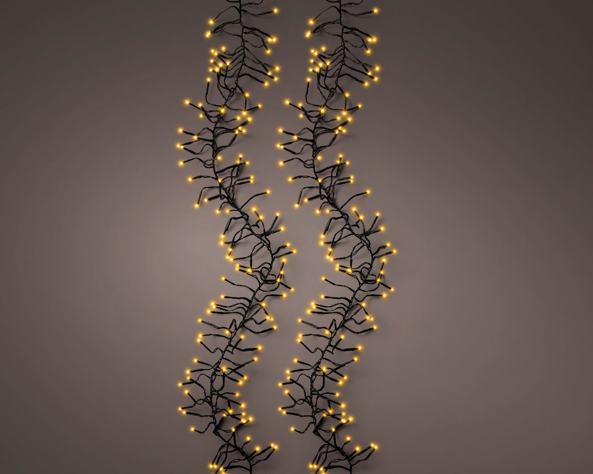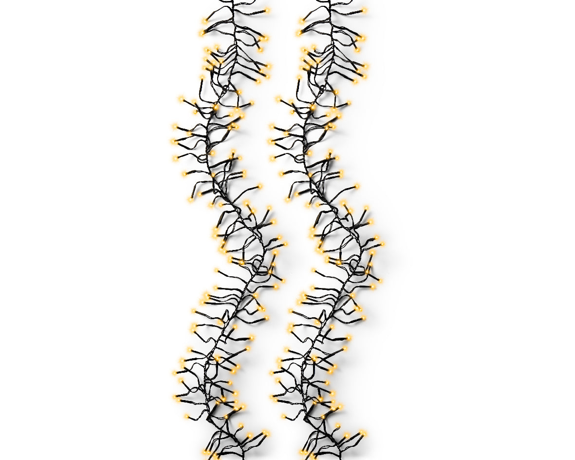 Wyjątkowo gęste lampki typu cluster o długości 7 metrów i aż 768 diodach LED. Dzięki bardzo małemu odstępowi między diodami (0,9 cm), tworzą intensywny i gęsty efekt świetlny – idealny do dekoracji świątecznych drzewek, balustrad lub elementów architektury ogrodowej.