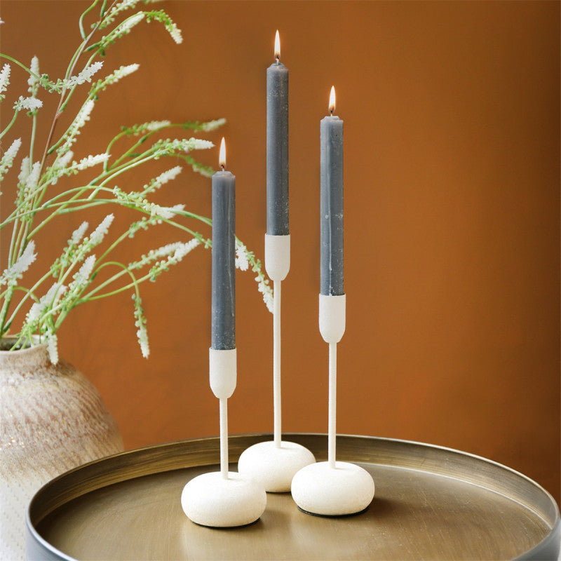 Elegancki świecznik metalowy w kolorze kremowym to połączenie minimalistycznej formy i subtelnej elegancji. Smukła, prosta sylwetka o delikatnie matowym wykończeniu sprawia, że świecznik doskonale wpasuje się w każdy wystrój – od nowoczesnego i skandynawskiego, po rustykalny i klasyczny.