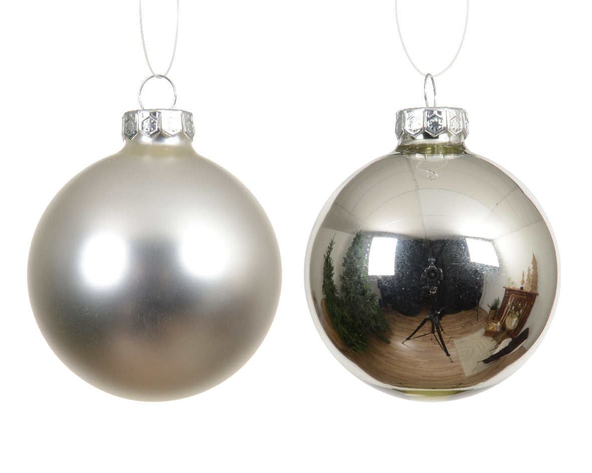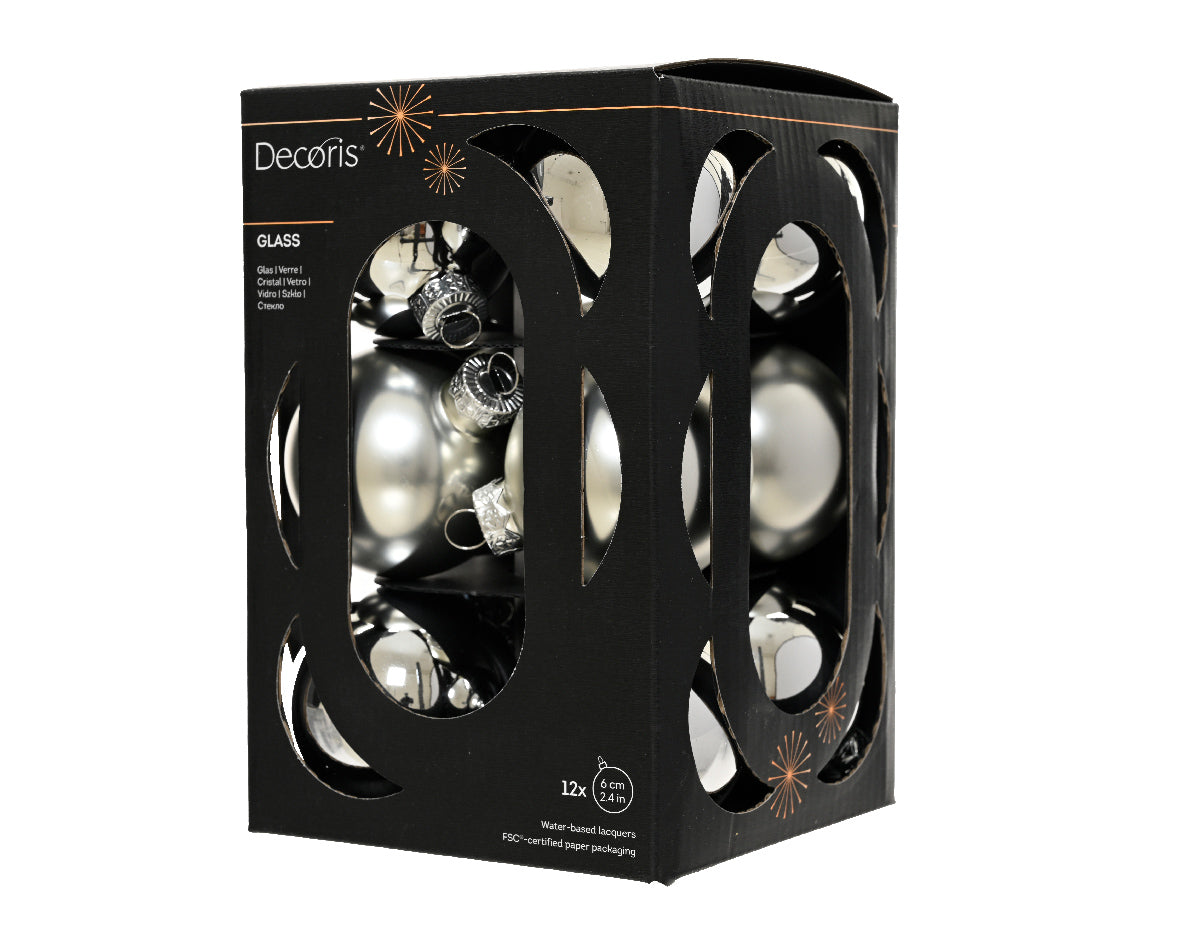 Szklane bombki 6 cm – srebrne, mat i połysk (12 szt.)