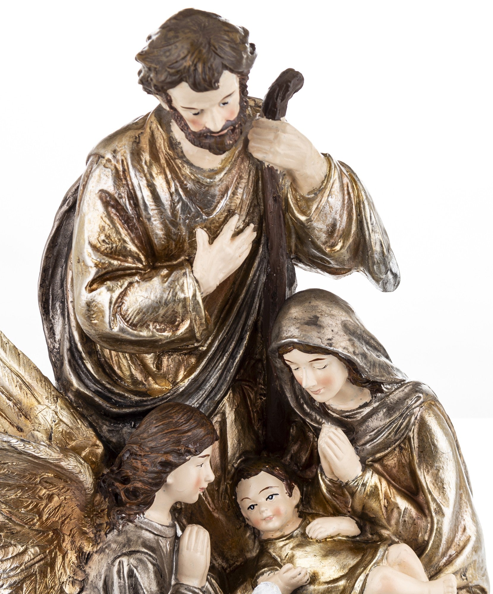 Okazała i niezwykle szczegółowa figurka szopki bożonarodzeniowej to wyjątkowa dekoracja, która wprowadzi do wnętrza ciepły i uroczysty klimat Świąt. Przedstawia Świętą Rodzinę w otoczeniu anioła i baranka – symboli pokoju, czystości i duchowego spokoju.