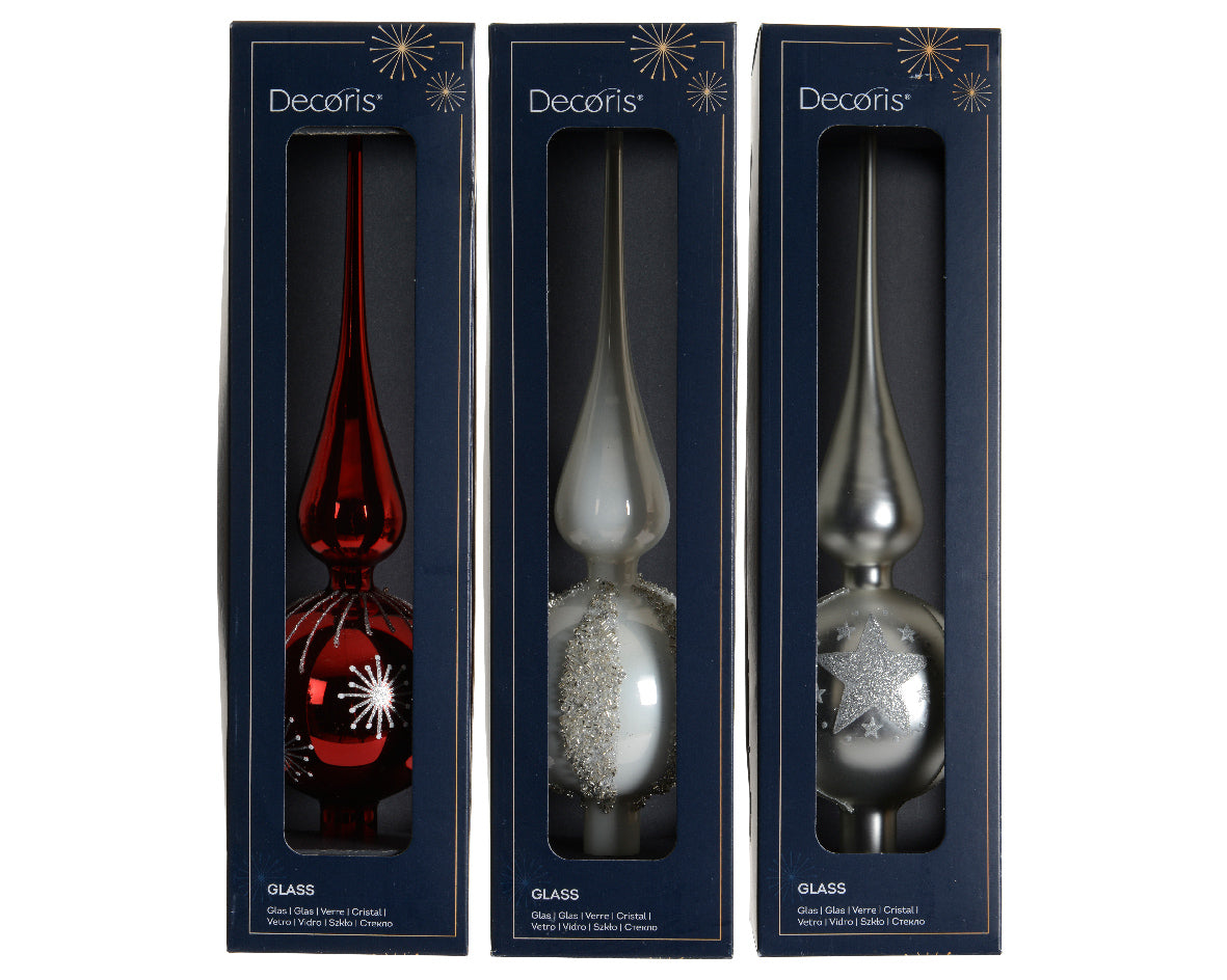 Szklany szpic na choinkę – błyszcząco-matowy z brokatem, 3 wzory (1 szt.)