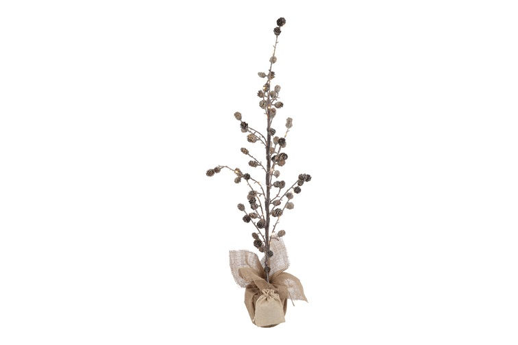 Naturalne i klimatyczne drzewko to idealna dekoracja świąteczna, która wprowadzi do wnętrza ciepło i przytulny nastrój. Wykonane z dbałością o detale, zdobione drobnymi szyszkami i delikatnym oświetleniem LED, pięknie imituje gałązki sosny lub olchy.