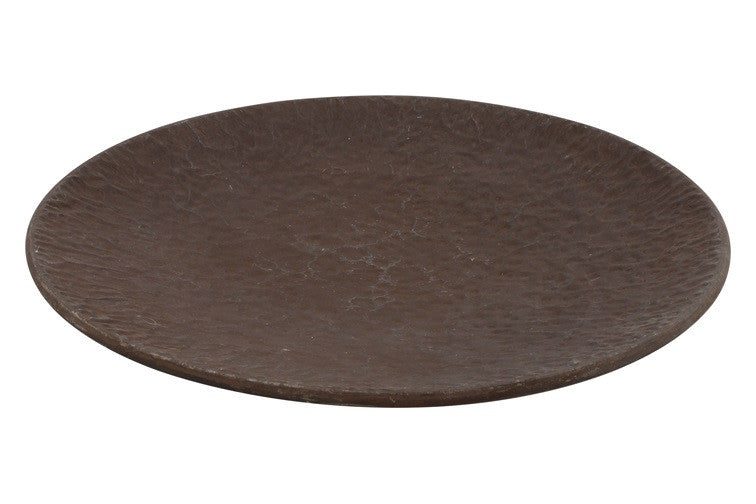 Stylowa taca w kolorze rdzawym wykonana z metalu z wykończeniem niklowanym, zachwyca subtelnym efektem postarzenia i wysoką jakością wykonania. Jej prosty, okrągły kształt oraz głęboki, rdzawy odcień nadają wnętrzu ciepła i przytulnej atmosfery.