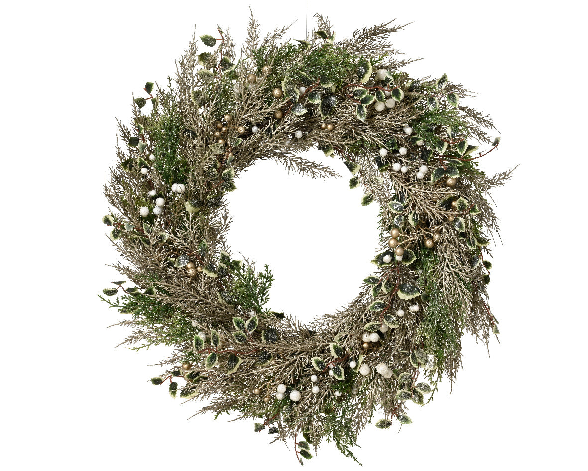 Wieniec świąteczny „Champagne” – 60 cm, zielony ze złotymi liśćmi i jagodami