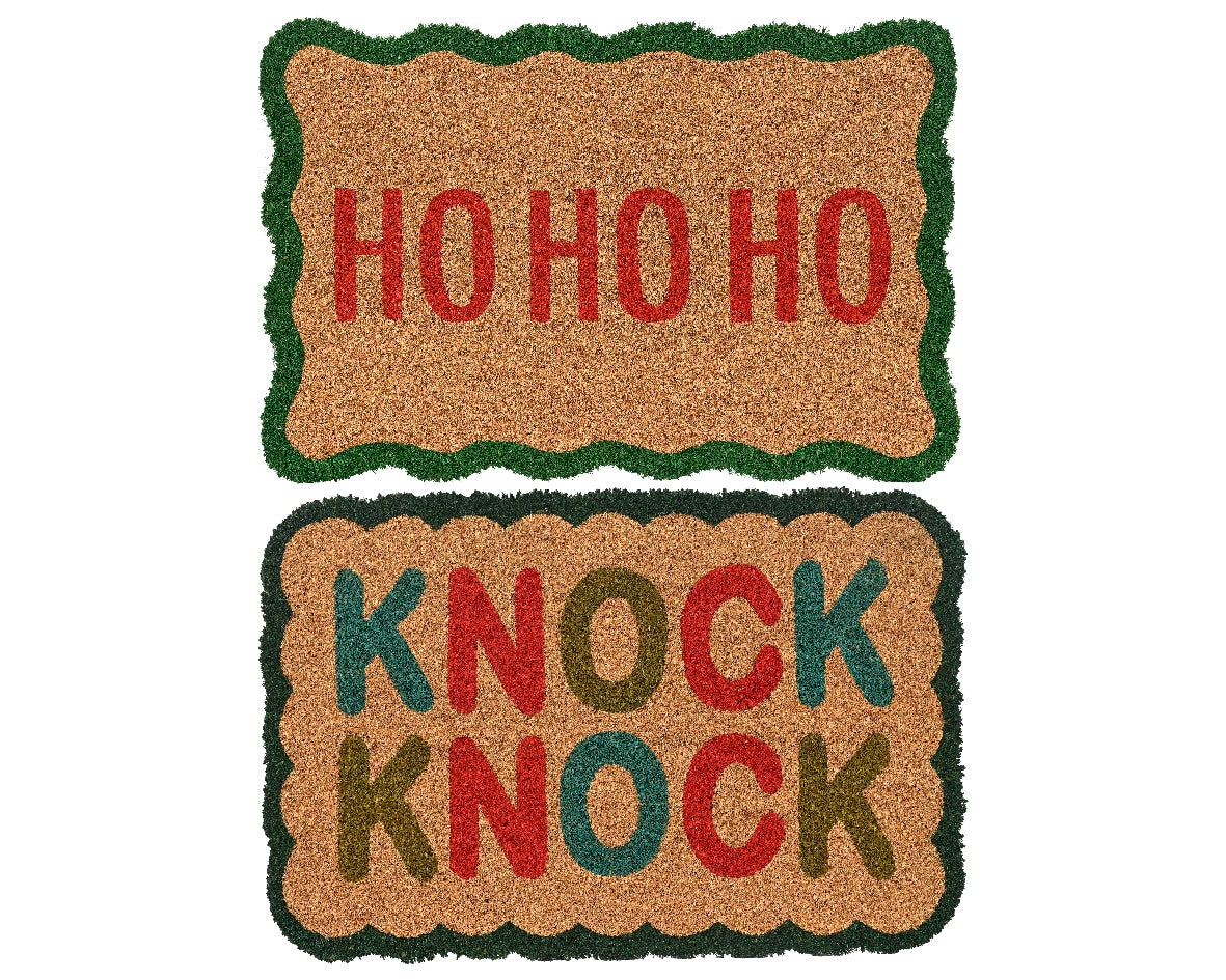 Praktyczna i stylowa wycieraczka wykonana z naturalnego włókna kokosowego, idealna do użytku na zewnątrz. Skutecznie zatrzymuje zabrudzenia, chroniąc wnętrze domu przed piaskiem i błotem. Solidne podłoże z PVC zapewnia stabilność i trwałość, a dekoracyjne motywy ( napis: Ho Ho Ho lub Knock Knock) dodają uroku wejściu do domu.