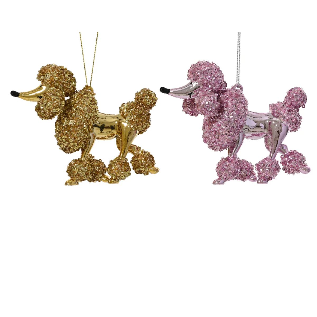 Świąteczna ozdoba – Piesek z brokatowym wykończeniem (2 kolory: złoty lub różowy) (1 szt.)