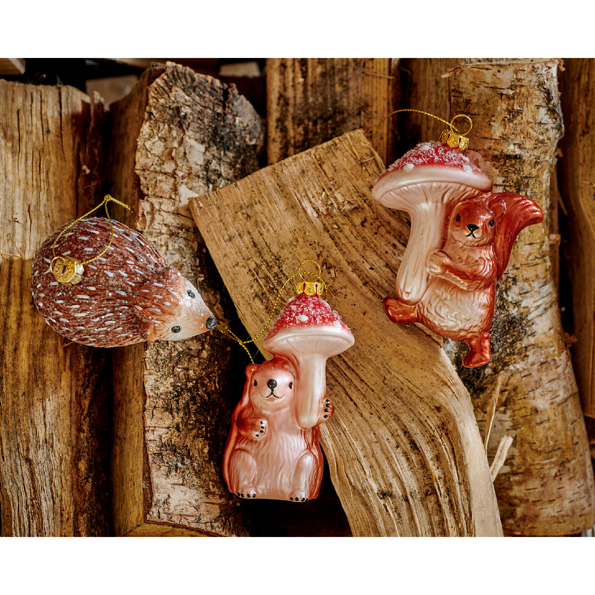 Lekka i nietłukąca ozdoba z polistyrenu w kształcie uroczego leśnego zwierzątka. Pokryta błyszczącym brokatem, idealnie wpisuje się w naturalne i bajkowe świąteczne aranżacje.