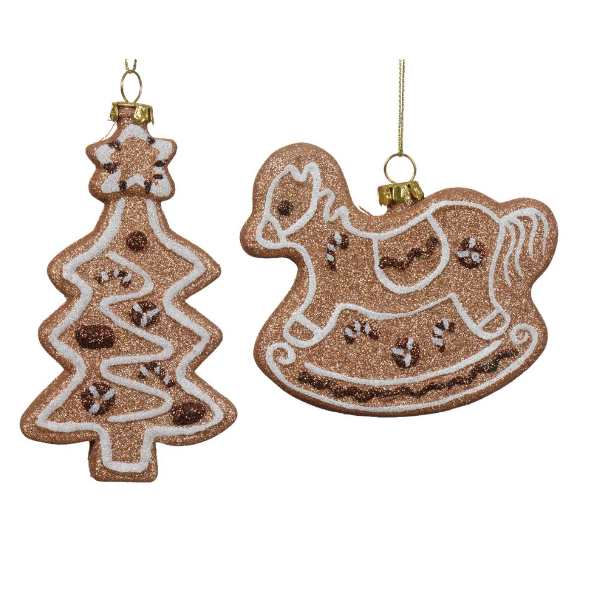 Urocza ozdoba świąteczna w stylu piernika, dostępna w dwóch wersjach: konik na biegunach lub choinka. Wykonana z trwałego, nietłukącego materiału i ozdobiona połyskującymi detalami w stylu glazury. Idealna do rodzinnych dekoracji choinkowych i bezpieczna także dla najmłodszych.