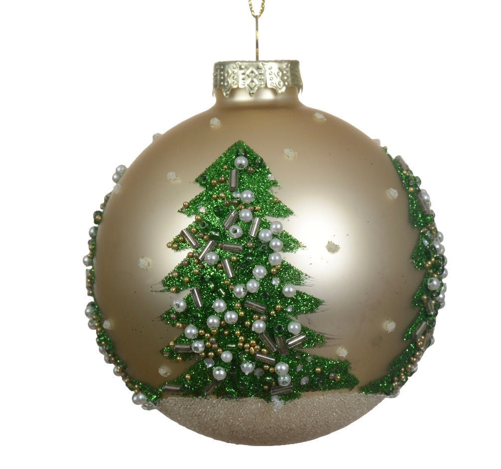 Szklana bombka z dekoracją – drzewko, perełki i koraliki, perłowa (1 szt.)