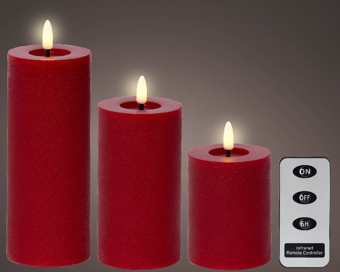 Zestaw Świec LED rustykalna czerwone 19/15/11.3 cm efekt knota światło stałe pilot – do wnętrz